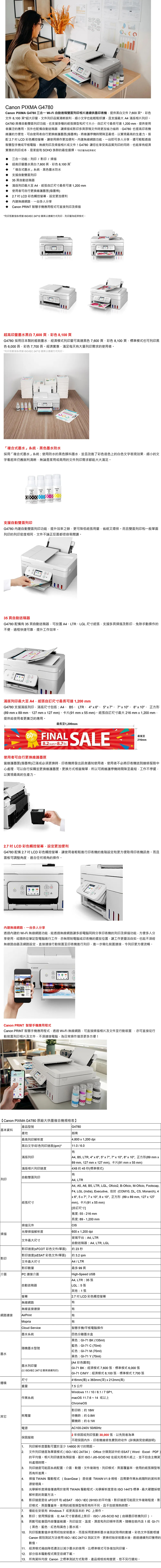 Canon PIXMA G4780 高速三合一Wi-Fi自動進稿雙面列印相片連續供墨印表機