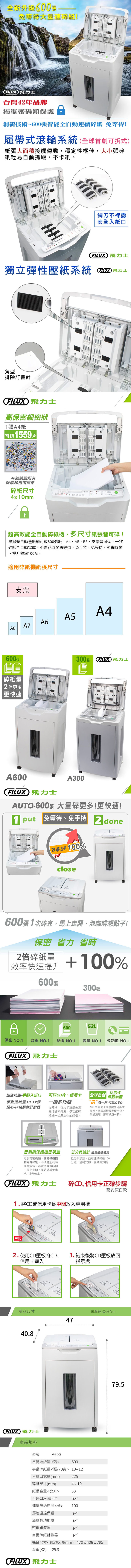 FILUX 飛力士 免手持免等待全自動碎紙機600張 對半速切紙升級版(53公升) A600