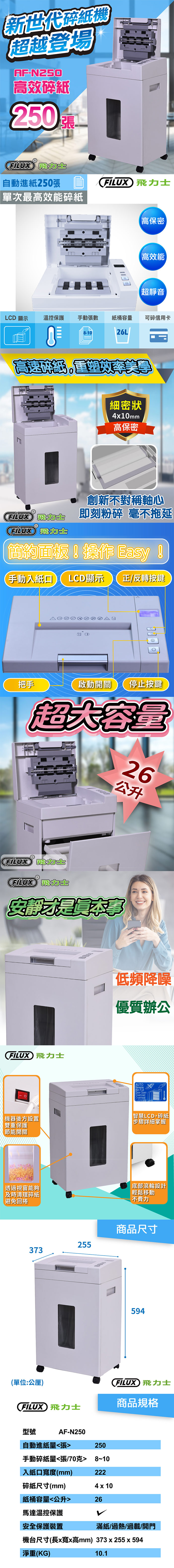 FILUX 飛力士 超靜音高速型免手持免等待全自動碎紙機250張(26公升) AF-N250
