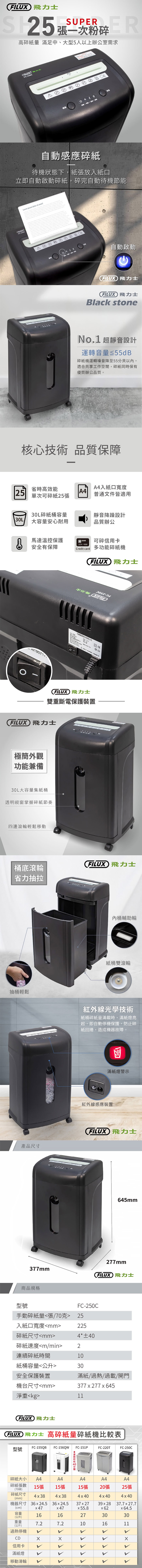 FILUX 飛力士 25張超靜音短碎狀碎紙機(30公升) FC-250C