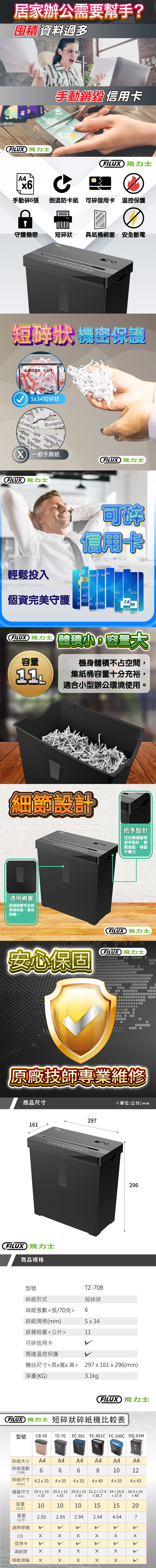 FILUX 飛力士 短碎狀曜石黑專業碎紙機(11公升) TZ-70B