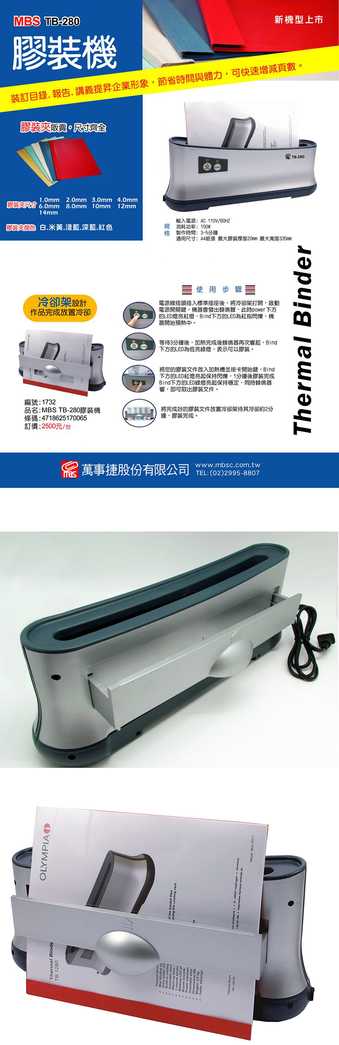 MBS萬事捷 TB-280 / TB280 最大厚度1.5cm A4 桌上型膠裝機