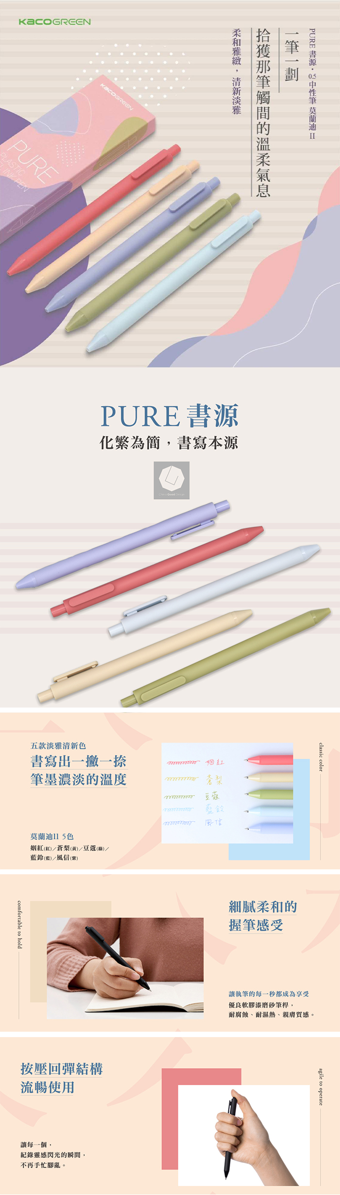 ✔筆芯顏色:姻紅、蒼梨黃、豆蔻綠、藍鈴藍、風信紫