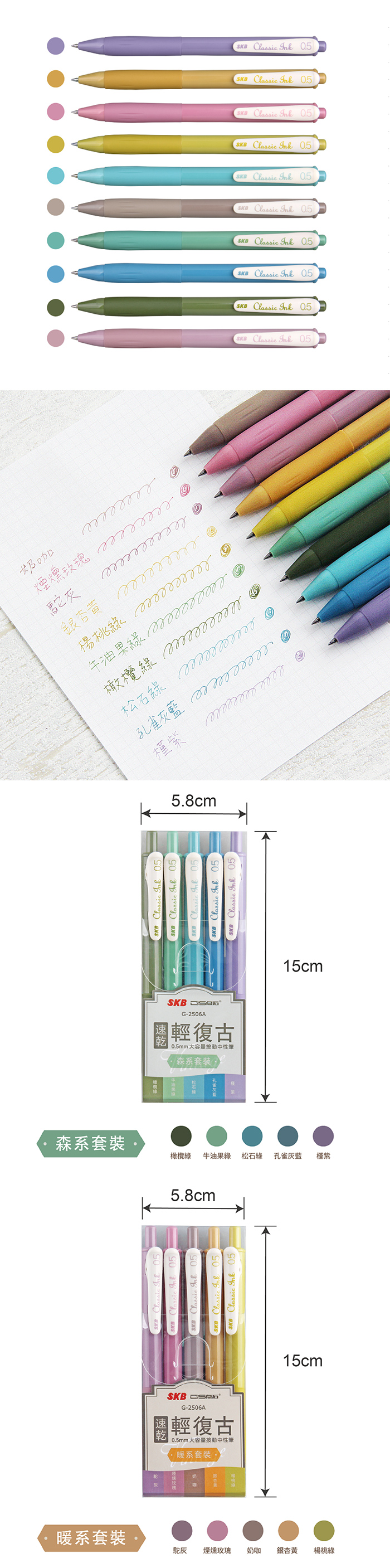 SKB 文明 G-2506A 孔雀灰藍 0.5 輕復古色速乾自動中性筆 1支