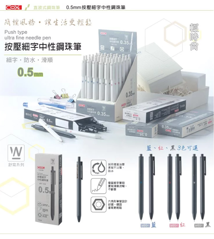 COX 三燕 CX2050-K 黑色 0.5 按壓中性鋼珠筆 1支