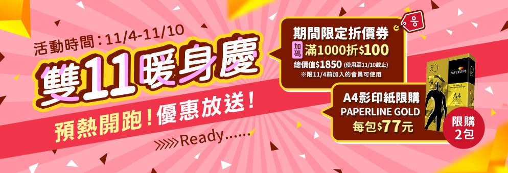1. 滿額現金折價券5張:於11/4當日9:30發送至會員帳戶中(限11/4前加入官網會員即可使用)