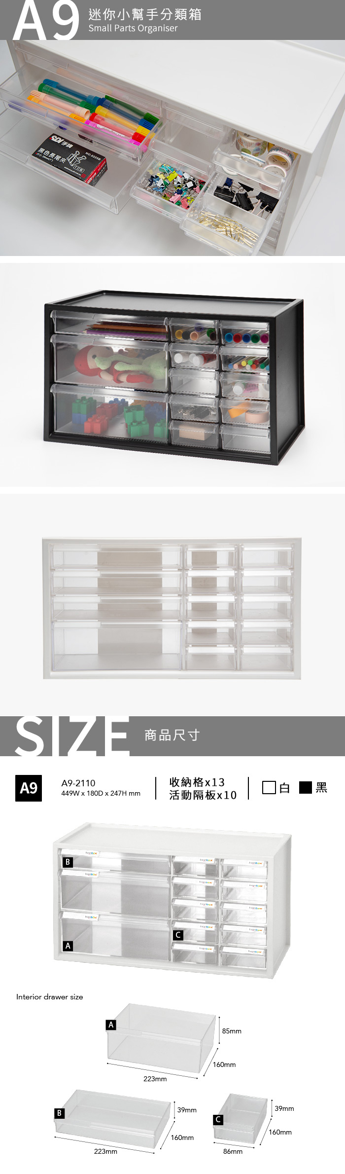 3.小抽屜x10(寬86mm x 深160mm x 高39mm)