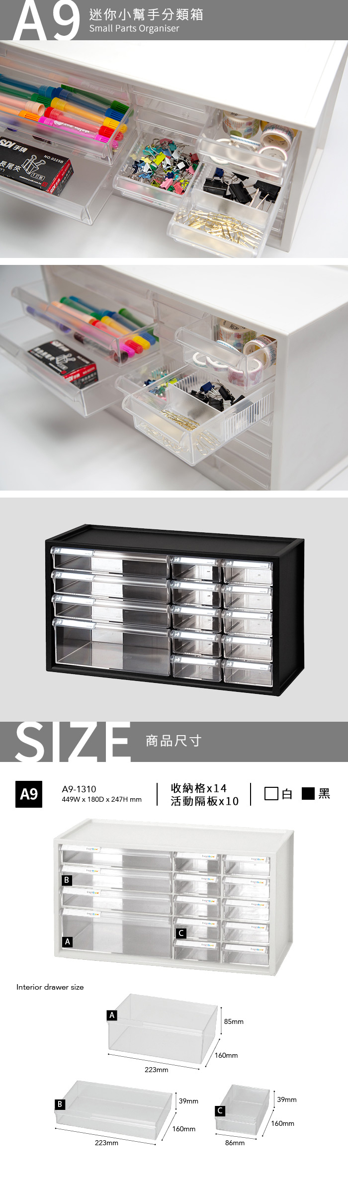 3.小抽屜x10(寬86mm x 深160mm x 高39mm)