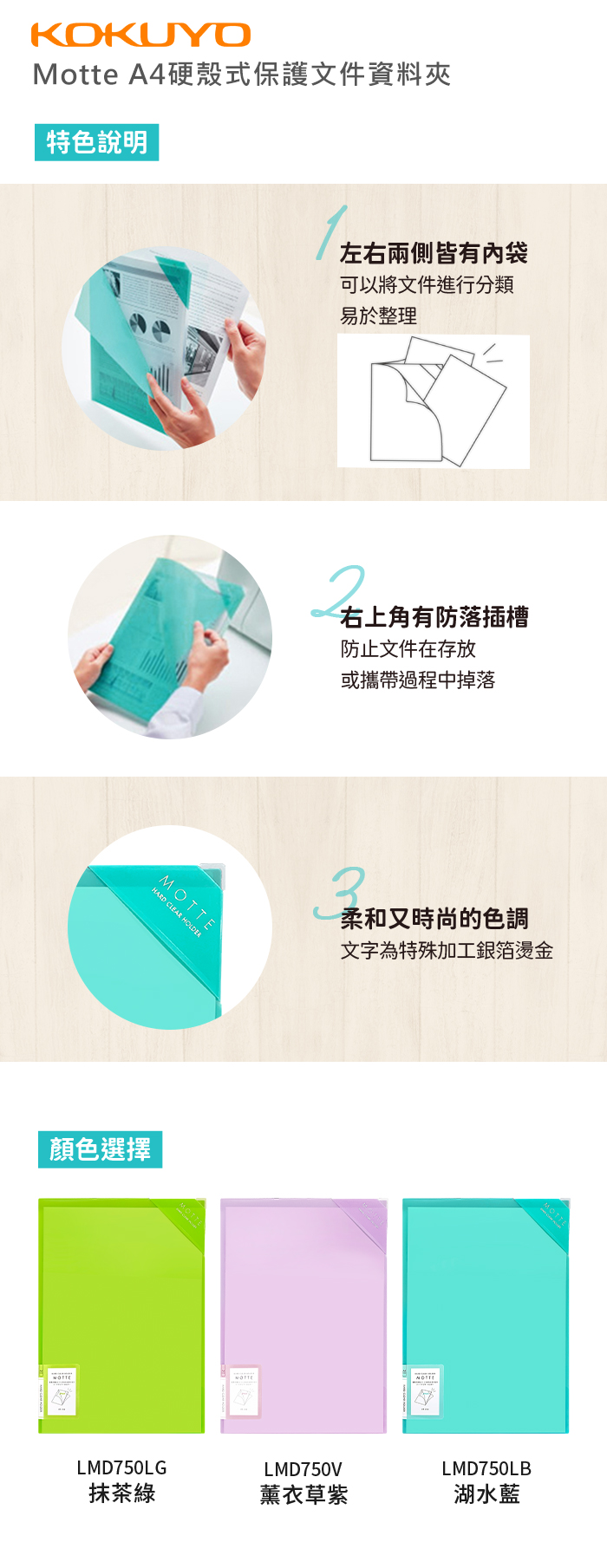 【日本文具】KOKUYO國譽 Motte LMD750LG A4 硬殼雙層安全資料夾 -抹茶綠 1個