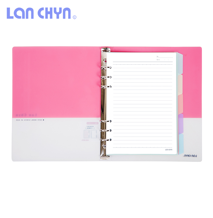 • 圓型6孔夾筆記本、附內頁20張、五段粉彩分段卡