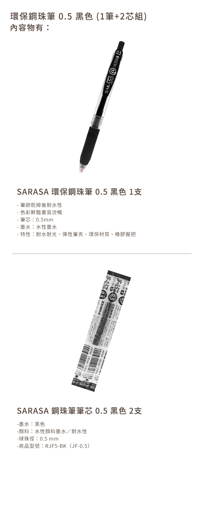 ZEBRA SARASA 環保鋼珠筆 0.5 黑色 (1筆+2芯組)