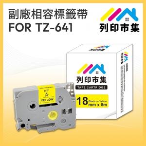 【列印市集】for Brother TZ-S641 / TZE-S641 高黏性系列黃底黑字 / 18mm 相容標籤帶