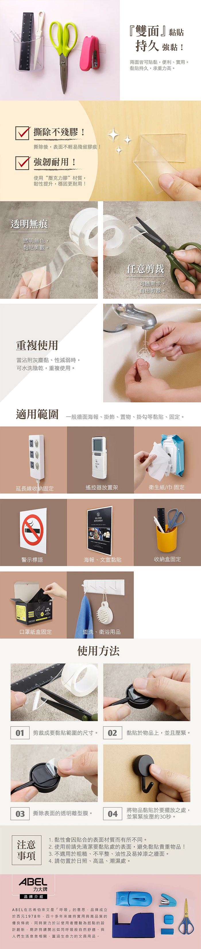 【促】ABEL力大牌 12524 透明無痕 強力雙面膠帶(超寬加厚型/厚2mm)5cm*1M (卷)