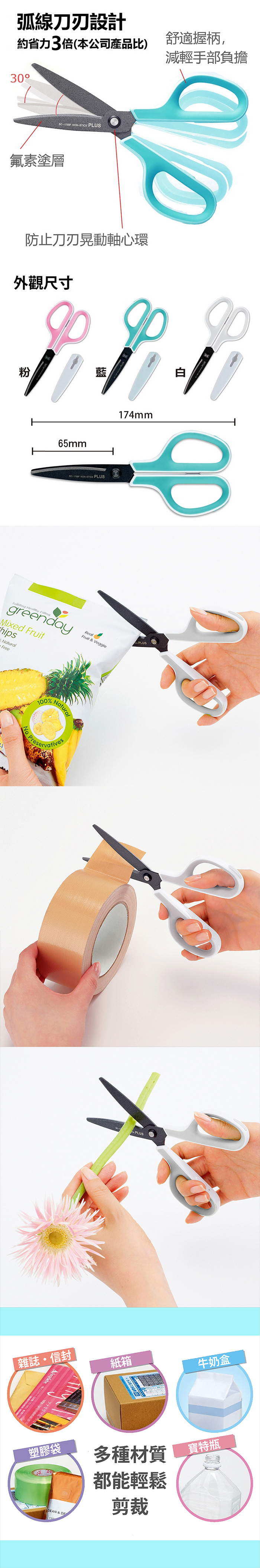 - 弧線形狀3倍更省力的安全弧線剪刀