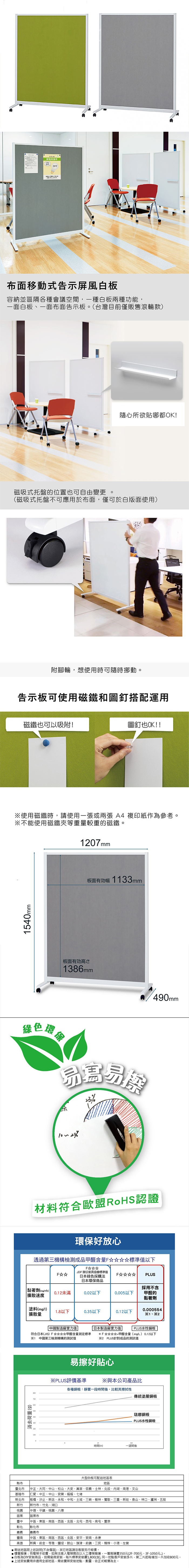 ✔表面材質:白版面 : 鋼 / 告示面 : 布(聚酯纖維)