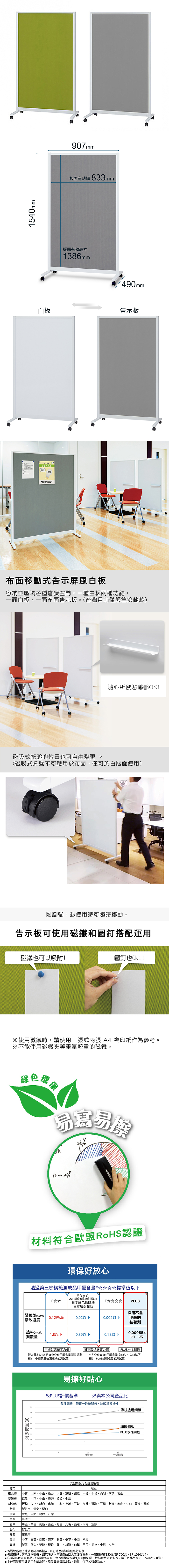 ✔表面材質:白版面 : 鋼 / 告示面 : 布(聚酯纖維)