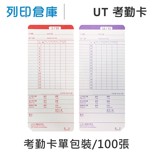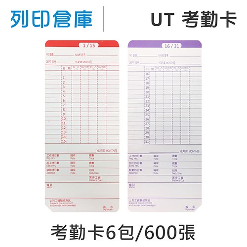 UT 考勤卡 4欄位 / 底部導圓角及切斜角 / 18.9x8.2cm / 超值組6包 (100張/包)