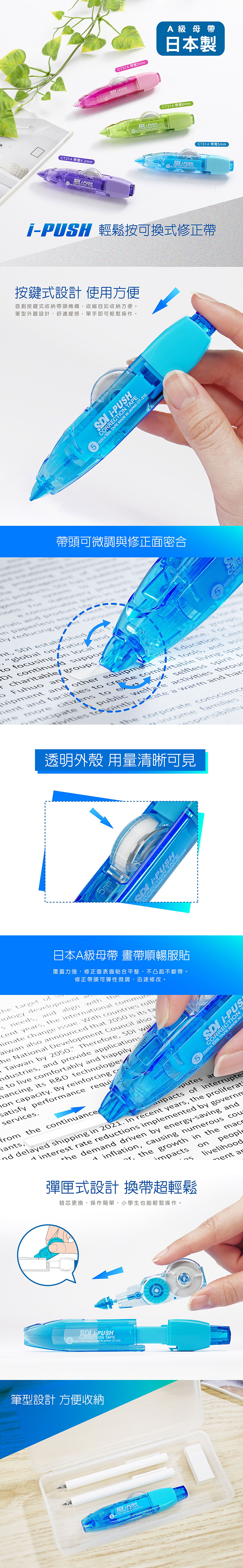 • SDI 手牌 CT-315 藍色 5mm*10M i-PUSH輕鬆按可換式修正帶 立可帶 1個
