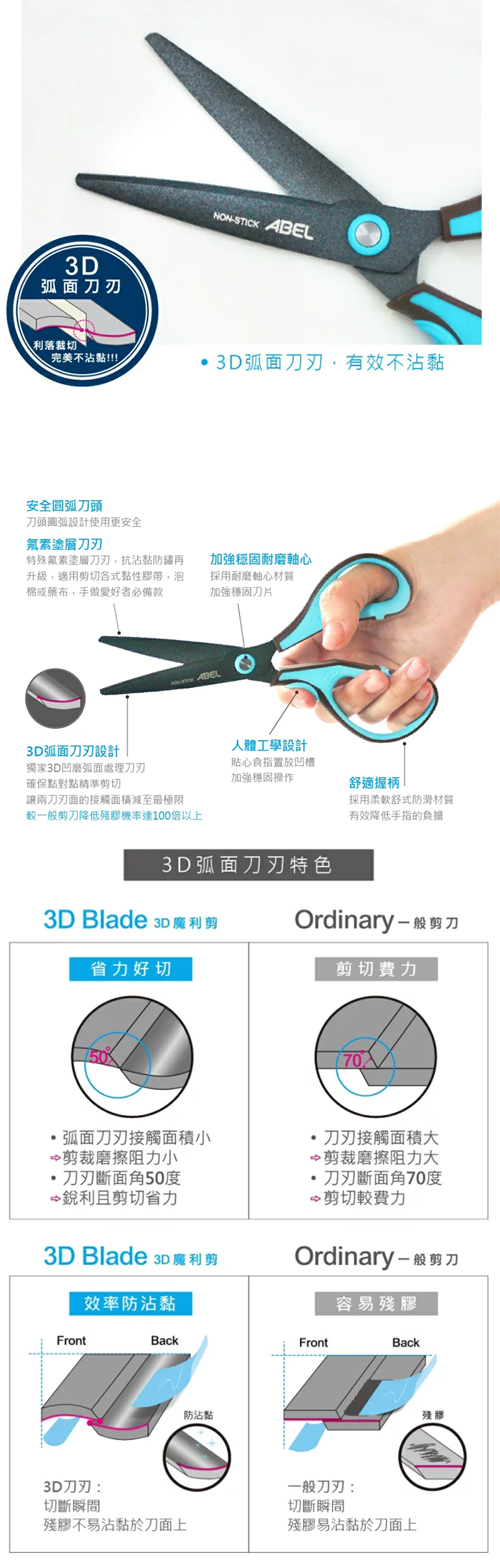 • ABEL力大牌 NO.60061-GR 7吋 3D魔利剪-氟素防沾粘剪刀 綠色 1支