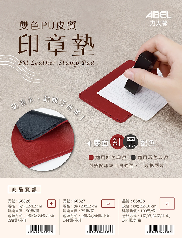 • ABEL力大牌 66826 黑紅雙色PU皮質印章墊 22x18cm 大/個
