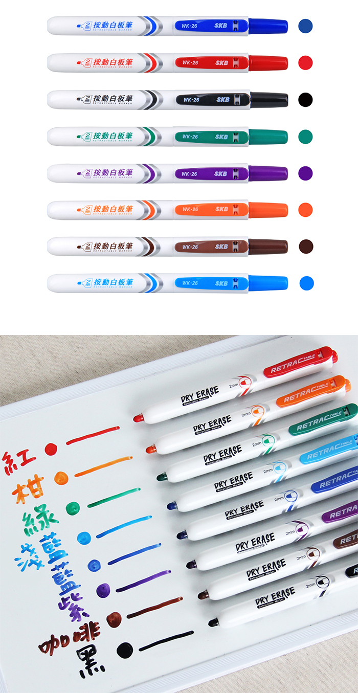 • SKB 文明 WK-26 綠色 2mm 易手控按動白板筆 1支 促銷