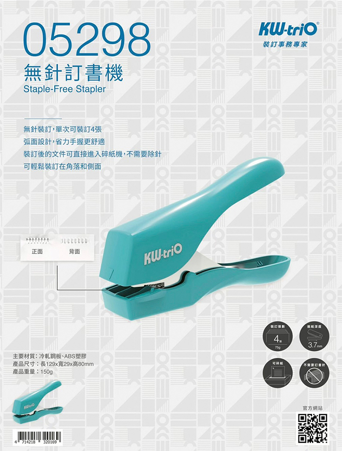 • KW-triO 05298 4枚無針釘書機 美壓版 1台 促銷
