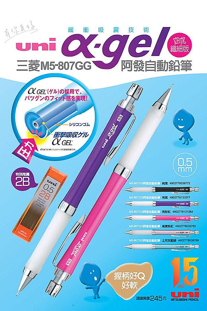 UNI三菱 M5-807GG-5 黃綠色 0.5 α-gel 阿發纖細版自動鉛筆 1支