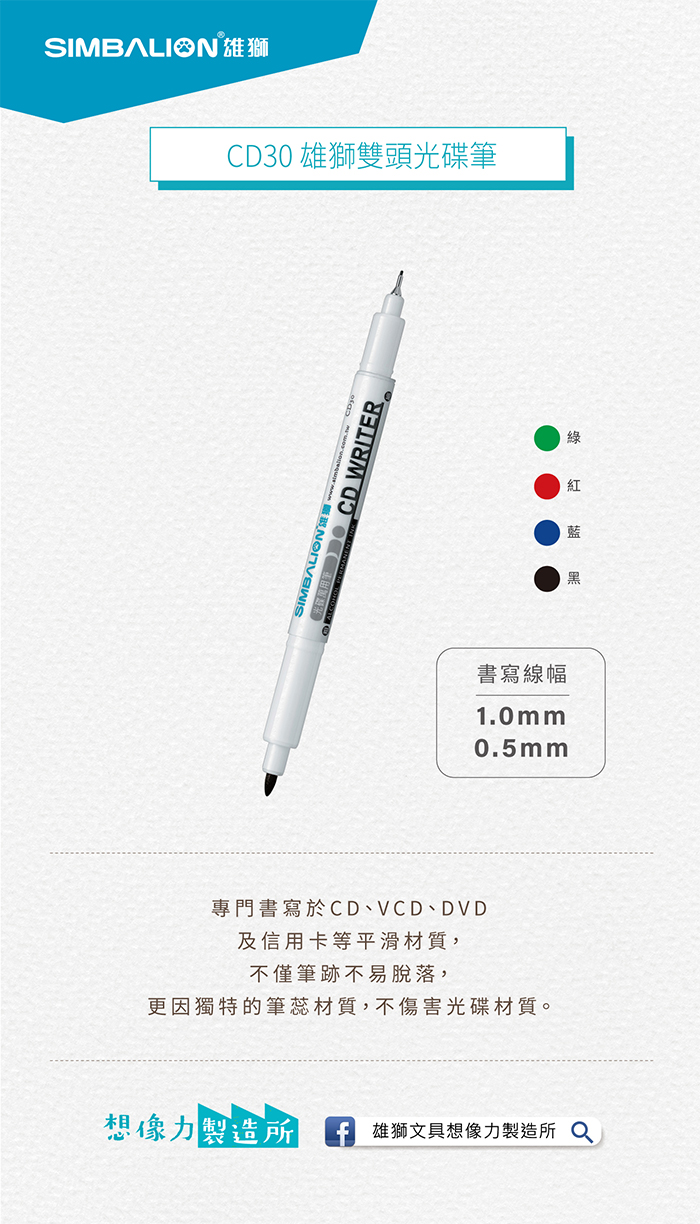 SIMBALION 雄獅 CD30 藍色 雙頭光碟筆 1支
