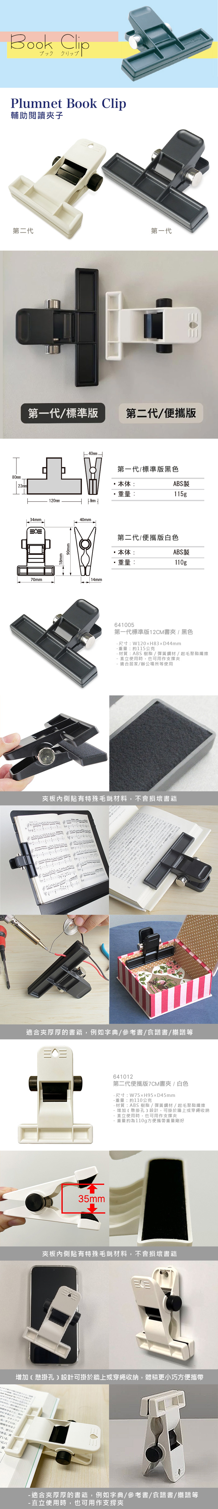 【日本文具】Plumnet Book clip2 641012 第二代便攜版7CM書夾 輔助閱讀夾子 樂譜夾 食譜夾 白色