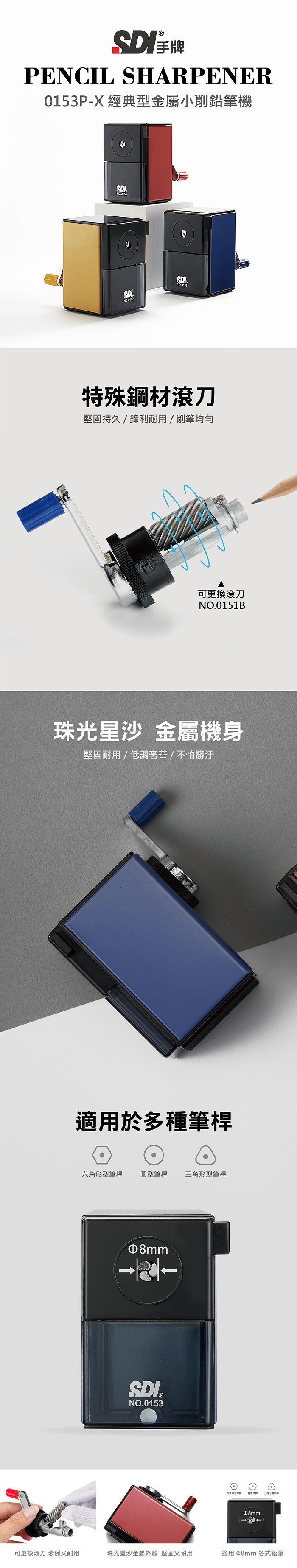 SDI 手牌 0153P-X 經典型金屬削鉛筆機 珠光黃色 1台