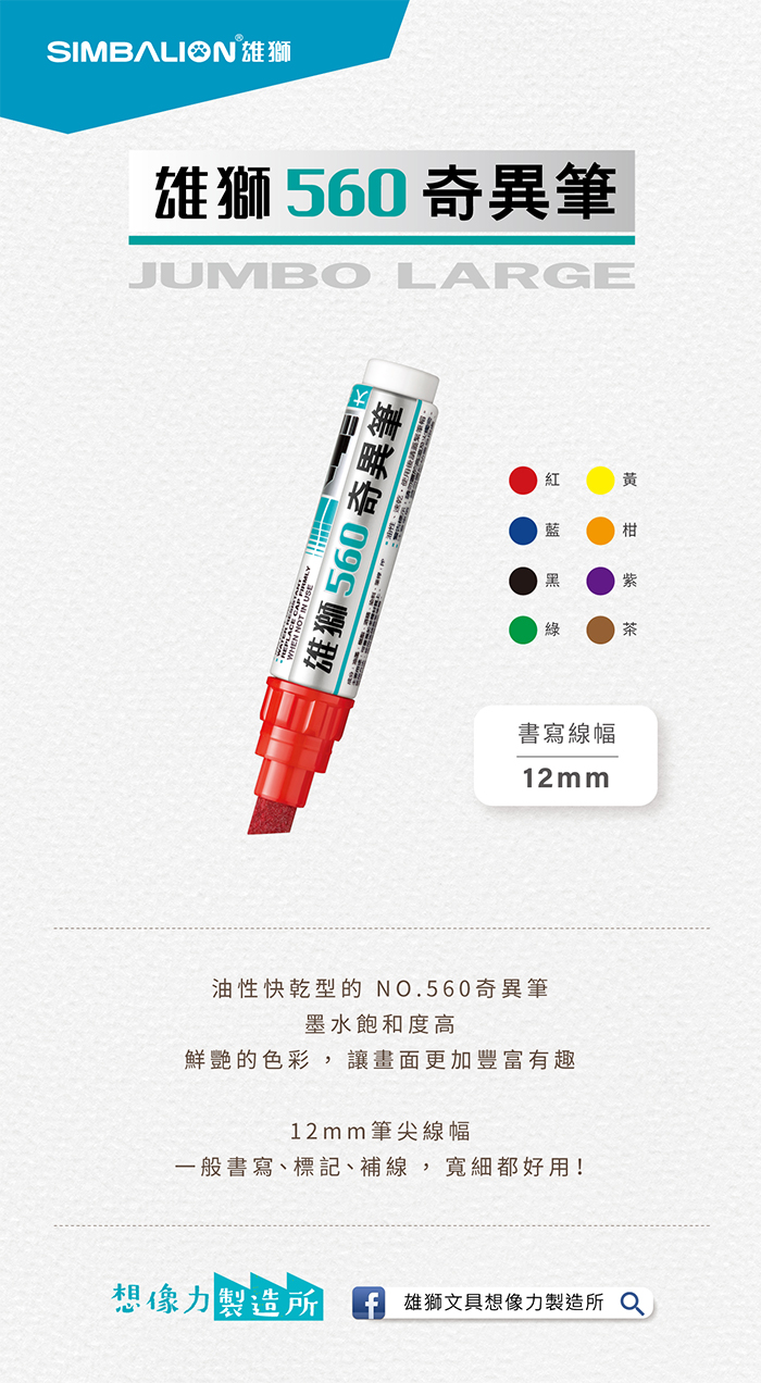 SIMBALION 雄獅 NO.560 紫色 12mm 大斜奇異筆 1支