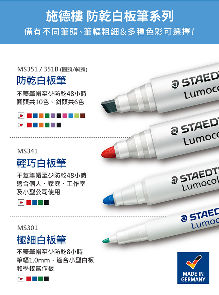 STAEDTLER 施德樓 MS351-9 黑色 防乾白板筆圓頭 1支